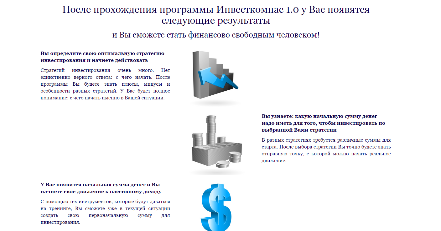 Участник этого курса узнает: какую начальную сумму денег надо иметь для того, чтобы инвестировать по выбранной Вами стратегии.